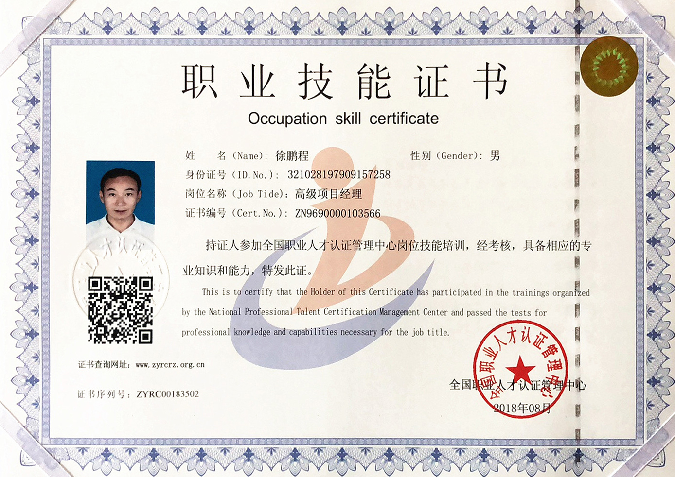 全國(guó)職業(yè)人才認(rèn)證管理中心授權(quán)頒發(fā)